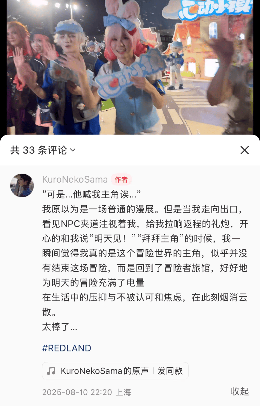 游戏提供的代理权是沉浸体验的核心基础。与影视、文学等传统媒介中用户作为旁观者角色的叙事模式不同,在玩家操控角色游玩游戏的过程中,是玩家在驱动故事,而非故事在引导人。游戏赋予玩家对角色行动和故事走向的决策权与控制权,这种主体性体验使玩家不再是跟随导演或作者的视角展开世界的卷轴,而是成为推动故事、体验世界的主角。小红书首场游戏动漫展REDLAND以“欢迎回家,永远的主角”为宣传语,游客可自由选择自己的角色身份,解锁专属“主线+个冒险点间形成自己的个性化“任务”路线》×镇江西津渡历史文化街区联动设置“江湖奇遇”、“烟火拾光”、“秘境探索”三条主题漫游线路,形成“剧情+探索+打卡”的深度游模式,让游客在开放式场景探索中感受历史底蕴与江湖魅力。游戏IP的引入与游戏化的景区路线设计,成功让游客从“游戏中的主角”转变为“现实中的主角”。